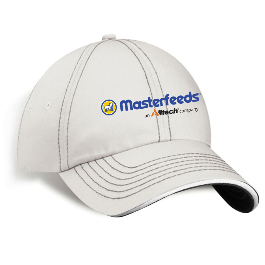 Stone / Royal Unstructured Cotton Chino Twill Cap with Contract Stitching an Back Adjustable Velcro Strap w Canadian Flag.