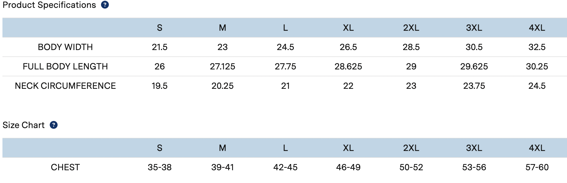Size Charts